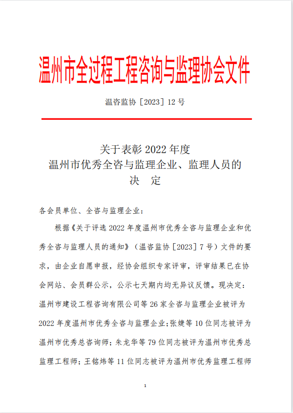恭贺我司员工郭永盛荣获“2022年度温州市优秀总监理工程师”荣誉称号