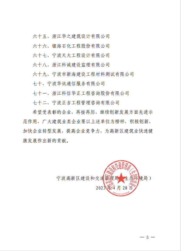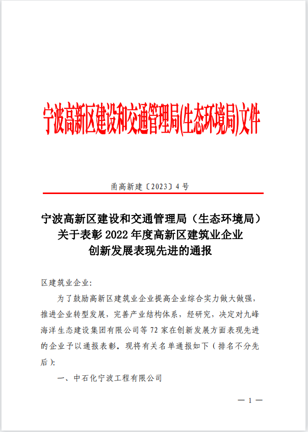 恭贺我司荣获“2022年度高新区建筑业企业创新发展表现先进”的荣誉称号