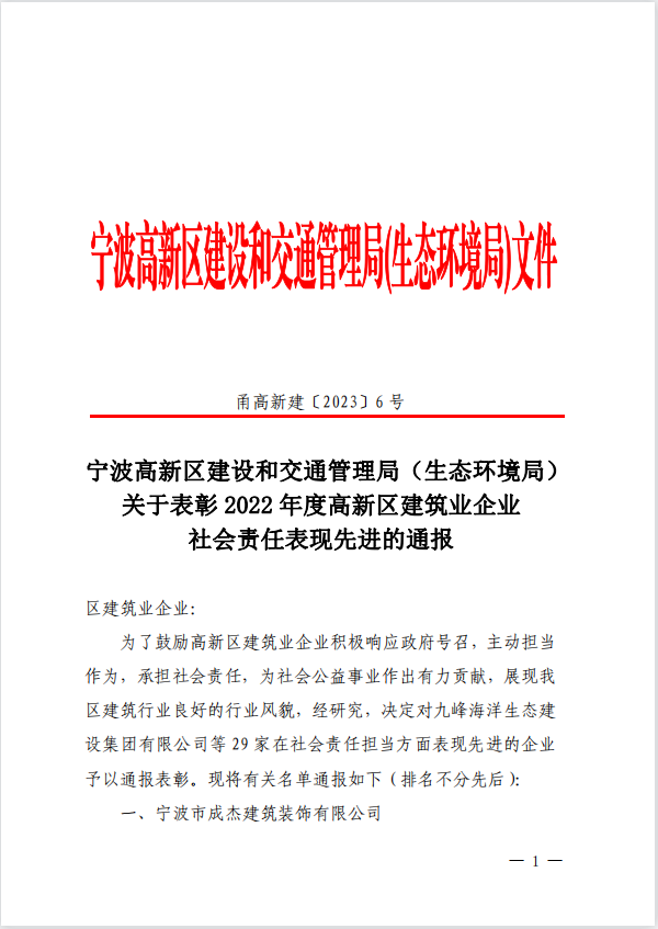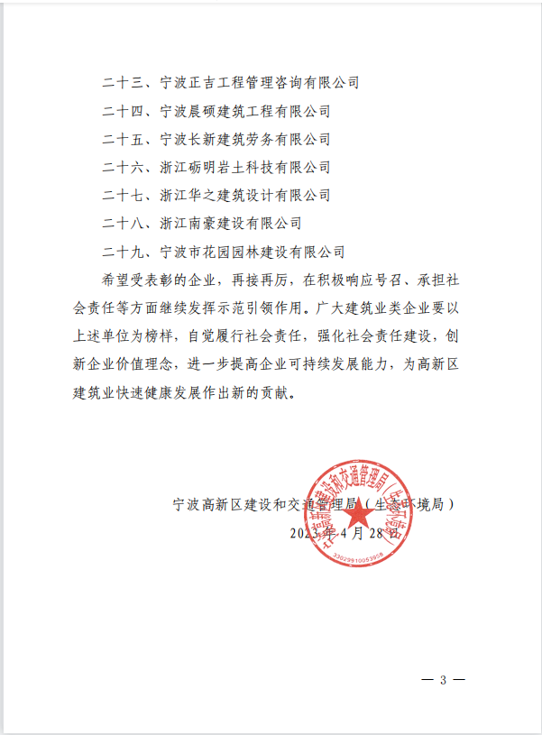 恭贺我司荣获“2022年度高新区建筑业企业社会责任表现先进”的荣誉称号