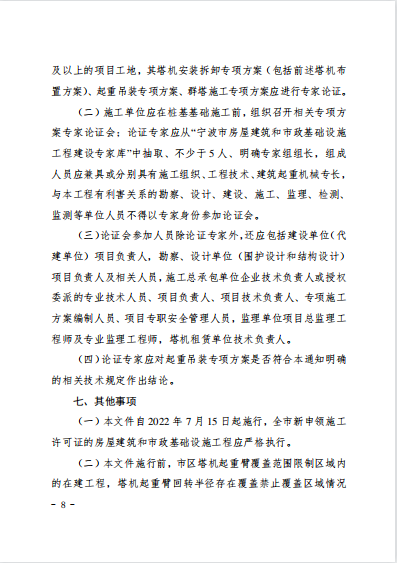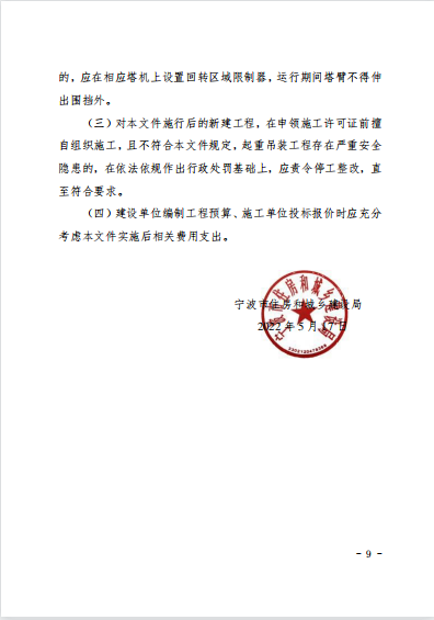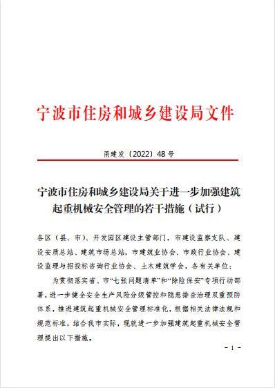 宁波市住房和城乡建设局关于进一步加强建筑 起重机械安全管理的若干措施(试行)