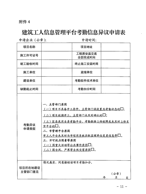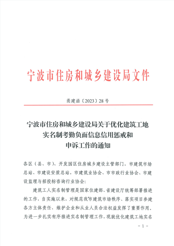 关于优化建筑工地实名制考勤负面信息信用惩戒和申诉工作的通知