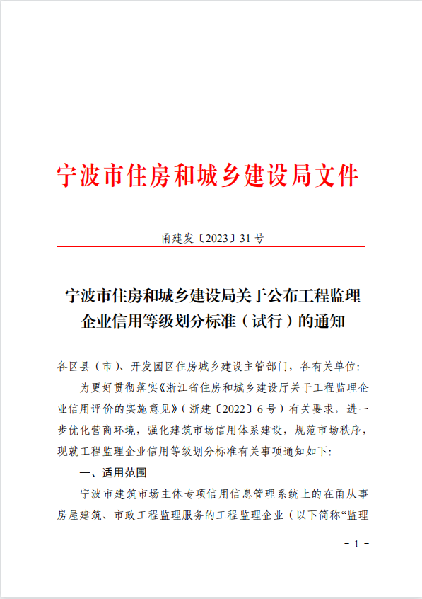 关于公布工程监理企业信用等级划分标准(试行)的通知
