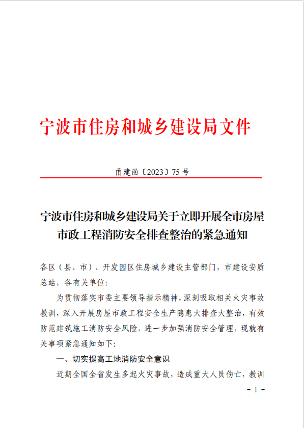 宁波市住房和城乡建设局关于立即开展全市房屋市政工程消防安全排查整治的紧急通知