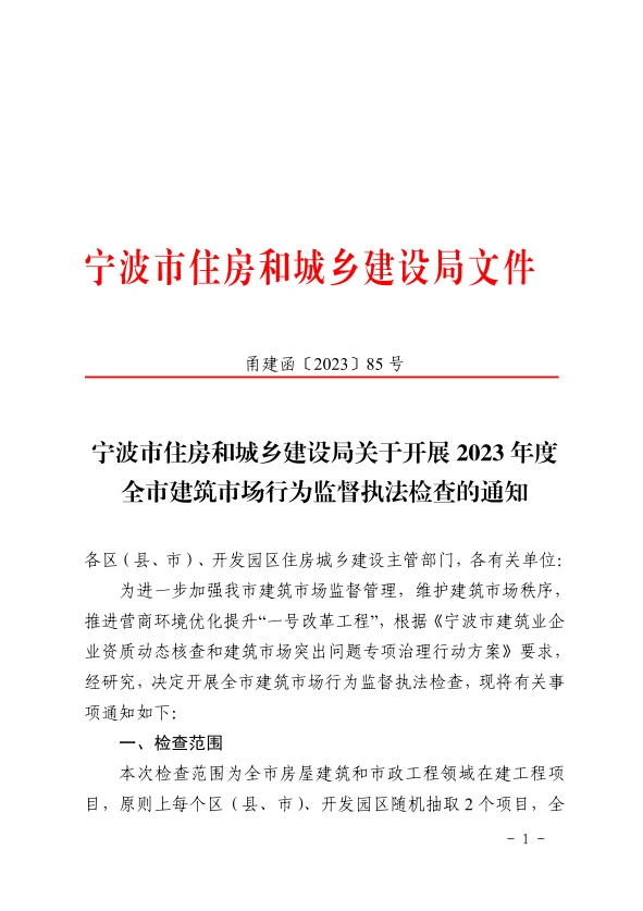 关于开展2023 年度全市建筑市场行为监督执法检查的通知