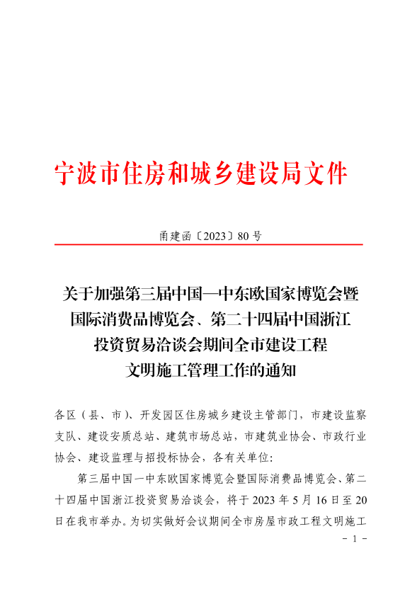 关于加强第三届中中东欧国家博览会期间全市建设工程文明施工管理工作的通知