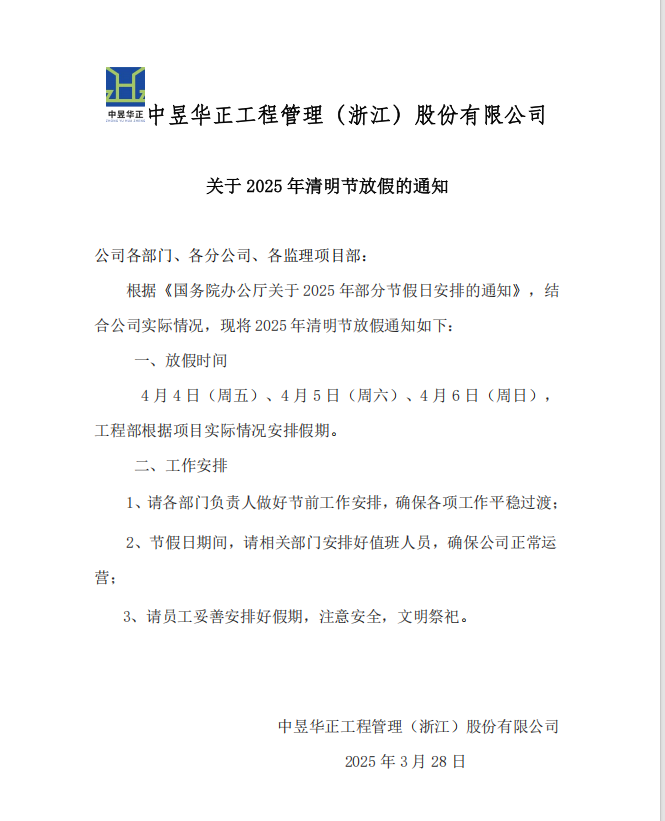 关于 2025 年清明节放假的通知